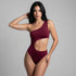 El Body Asimétrico Lateral Borgoña está elaborado con 95% Nylon / 5% Elastano de primera calidad, elaborada con doble capa para evitar transparencias y costuras invisibles.