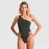 El Body asimétrico sin mangas Verde Militar cuenta con un práctico cierre de gancho de dos posiciones en la parte inferior, lo que facilita ponerlo y quitarlo.