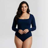 El Body cuadrado manga larga azul marino Talla Grande está elaborado con 95% Nylon / 5% Elastano de primera calidad, elaborada con doble capa para evitar transparencias y costuras invisibles.