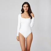 El Body cuadrado manga larga Blanco está elaborado con 95% Nylon / 5% Elastano de primera calidad, elaborada con doble capa para evitar transparencias y costuras invisibles.