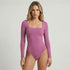El Body Cuadrado Manga Larga Magenta está elaborado con 95% Nylon / 5% Elastano de primera calidad, elaborada con doble capa para evitar transparencias y costuras invisibles.