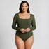 El Body Cuadrado Manga Larga Verde Militar Talla Grande está elaborado con 95% Nylon / 5% Elastano de primera calidad, elaborada con doble capa para evitar transparencias y costuras invisibles.