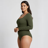¿Por qué te recomendamos el Body Cuadrado Manga Larga Verde Militar Talla Grande?