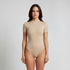 El Body Cuello Alto Manga Corta Beige está elaborado con 95% Nylon / 5% Elastano de primera calidad, elaborada con doble capa para evitar transparencias y costuras invisibles.