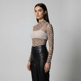 El Body Mallatex Manga Larga Leopardo está elaborado con 95% Nylon / 5% Elastano de primera calidad, elaborada con doble capa para evitar transparencias y costuras invisibles.