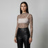 El Body Mallatex Manga Larga Leopardo es para las que aman destacar con prendas llenas de actitud. Hecho en mallatex estampado tipo leopardo, es ligero, elástico y con un toque de transparencia que lo hace irresistible. El cuello cerrado y las mangas largas equilibran el diseño, dándole un aire sexy pero sofisticado. Ideal para looks atrevidos, frescos y con toda la onda.
