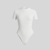 El Body cuello redondo manga corta blanco está elaborado con 95% Nylon / 5% Elastano de primera calidad, elaborada con doble capa para evitar transparencias y costuras invisibles.