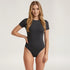 El Body cuello redondo manga corta Gris Oscuro cuenta con un práctico cierre de gancho de dos posiciones en la parte inferior, lo que facilita ponerlo y quitarlo.