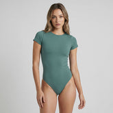 Body Cuello Redondo Manga Corta Verde Petróleo