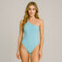 El Body asimétrico sin mangas Celeste Claro está elaborado con 95% Nylon / 5% Elastano de primera calidad, elaborada con doble capa para evitar transparencias y costuras invisibles.