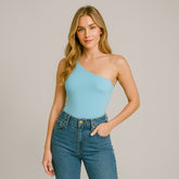 ¿Por qué te recomendamos el Body asimétrico sin mangas Celeste Claro?