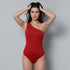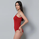 El Body asimétrico sin mangas Rojo está elaborado con 95% Nylon / 5% Elastano de primera calidad, elaborada con doble capa para evitar transparencias y costuras invisibles.