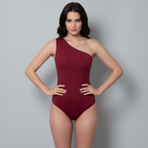 El Body asimétrico sin mangas Vinotinto está elaborado con 95% Nylon / 5% Elastano de primera calidad, elaborada con doble capa para evitar transparencias y costuras invisibles.