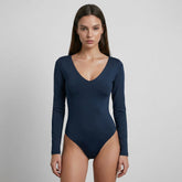 Body Escote En V Manga Larga Azul Marino