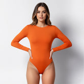 El Body Espalda Media Manga Larga Naranja está elaborado con 95% Nylon / 5% Elastano de primera calidad, elaborada con doble capa para evitar transparencias y costuras invisibles.
