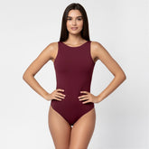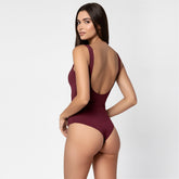 El Body espalda media Vinotinto está elaborado con 95% Nylon / 5% Elastano de primera calidad, elaborada con doble capa para evitar transparencias y costuras invisibles.