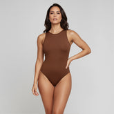 El Body Halter Café está elaborado con 95% Nylon / 5% Elastano de primera calidad, elaborada con doble capa para evitar transparencias y costuras invisibles.