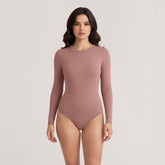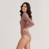 El Body Redondo Manga Larga beige tostado está elaborado con 95% Nylon / 5% Elastano de primera calidad, elaborada con doble capa para evitar transparencias y costuras invisibles.