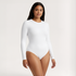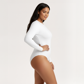 El Body Redondo Manga Larga Blanco Talla Grande está elaborado con 95% Nylon / 5% Elastano de primera calidad, elaborada con doble capa para evitar transparencias y costuras invisibles.