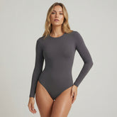 El Body Redondo Manga Larga Gris Oscuro está elaborado con 95% Nylon / 5% Elastano de primera calidad, elaborada con doble capa para evitar transparencias y costuras invisibles.