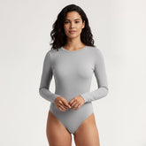 El Body Redondo Manga Larga Gris Perla está elaborado con 95% Nylon / 5% Elastano de primera calidad, elaborada con doble capa para evitar transparencias y costuras invisibles.