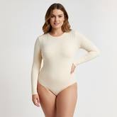 El Body Redondo Manga Larga Marfil Talla Grande está elaborado con 95% Nylon / 5% Elastano de primera calidad, elaborada con doble capa para evitar transparencias y costuras invisibles.