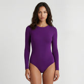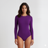 El Body Redondo Manga Larga Morado está elaborado con 95% Nylon / 5% Elastano de primera calidad, elaborada con doble capa para evitar transparencias y costuras invisibles.