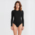 El Body Redondo Manga Larga negro está elaborado con 95% Nylon / 5% Elastano de primera calidad, elaborada con doble capa para evitar transparencias y costuras invisibles.