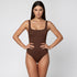 El Body Tirantes Escote Cuadrado Café está elaborado con 95% Nylon / 5% Elastano de primera calidad, elaborada con doble capa para evitar transparencias y costuras invisibles.
