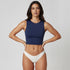 El Crop Top Halter Azul Marino está elaborado con 95% Nylon / 5% Elastano de primera calidad, elaborada con doble capa para evitar transparencias y costuras invisibles.