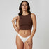 El Crop Top Halter Café está elaborado con 95% Nylon / 5% Elastano de primera calidad, elaborada con doble capa para evitar transparencias y costuras invisibles.