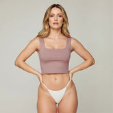 Crop Top Tirantes Escote Cuadrado Beige Tostado