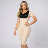 La Faja Levantacola Manga Corta Pierna 3/4 es una faja de alta compresión diseñada para un moldeo completo y discreto. Su cobertura tipo manga corta y su estructura con cubrimiento en axilas y espalda ayudan a lograr un ajuste más envolvente, aportando una sensación de soporte integral y un acabado más pulido bajo la ropa.